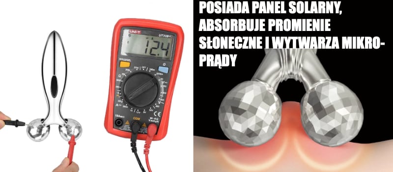 Masażer 3D posiada panel słoneczny, który absorbuje światło słoneczne dzięki czemu wytwarzane są delikatne mikro-prądy poprawiające metabolizm skóry.