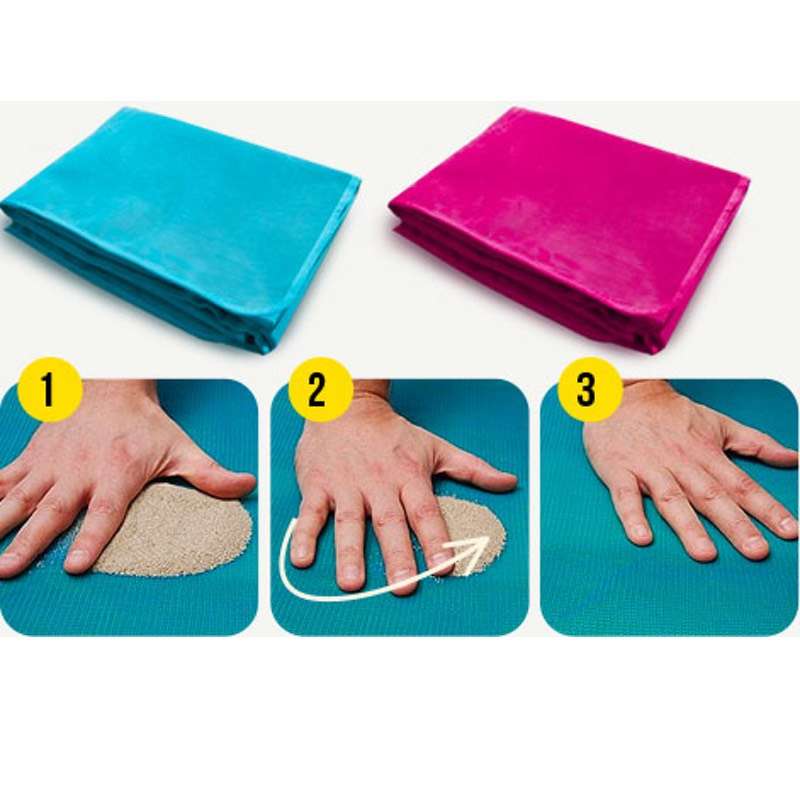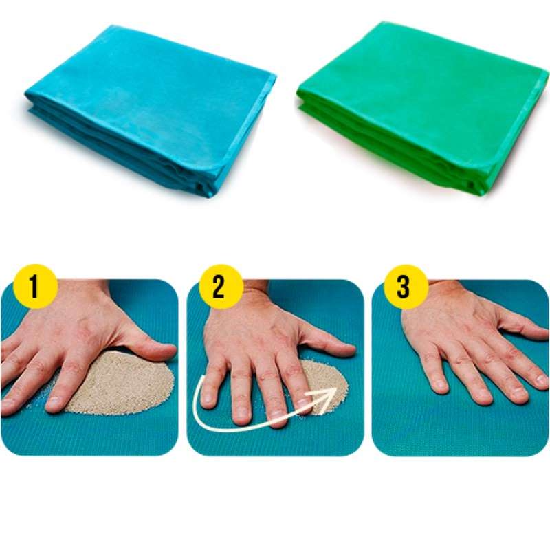 Jednym prostym ruchem twoja mata staje czysta od piasku! Unikalna wielowarstwowa mata jest w stanie wypchnąć cząsteczki piasku i ziemi przez włókna siatki w dół. Mata jest odporna na piasek, kurz i brud, a także może służyć jako schronienie przed promienie słoneczne, ponieważ nie przepuszcza 90% promieniowania ultrafioletowego.